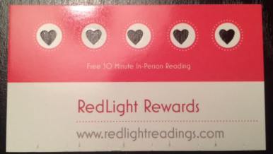 In-Person: 5 hearts on RedLight Rewards punch card (30-60 min.) = FREE 30 min. reading!